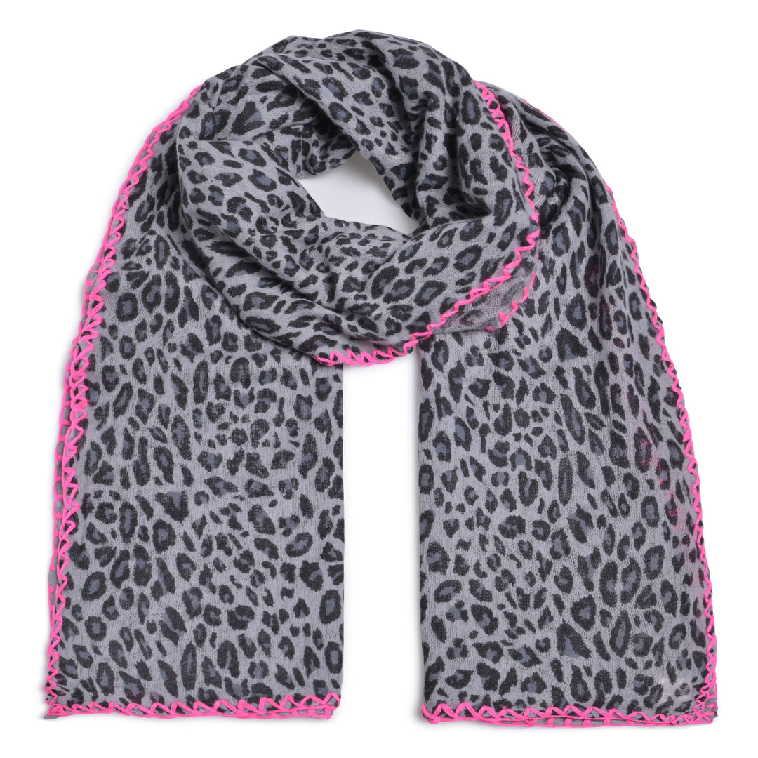 Cashmere Schal Feli-cs Leoprint mit Stitching in Schwarz