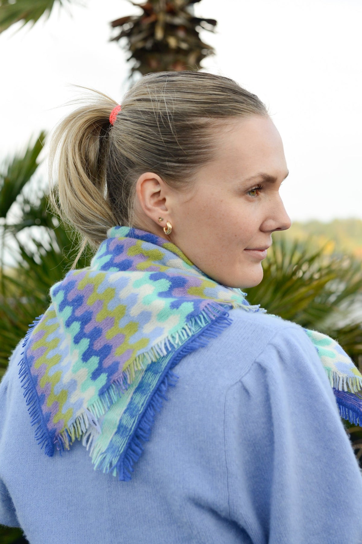 Cashmere Bandana Liv-cs mit Zig-Zag-Muster in Königsblau