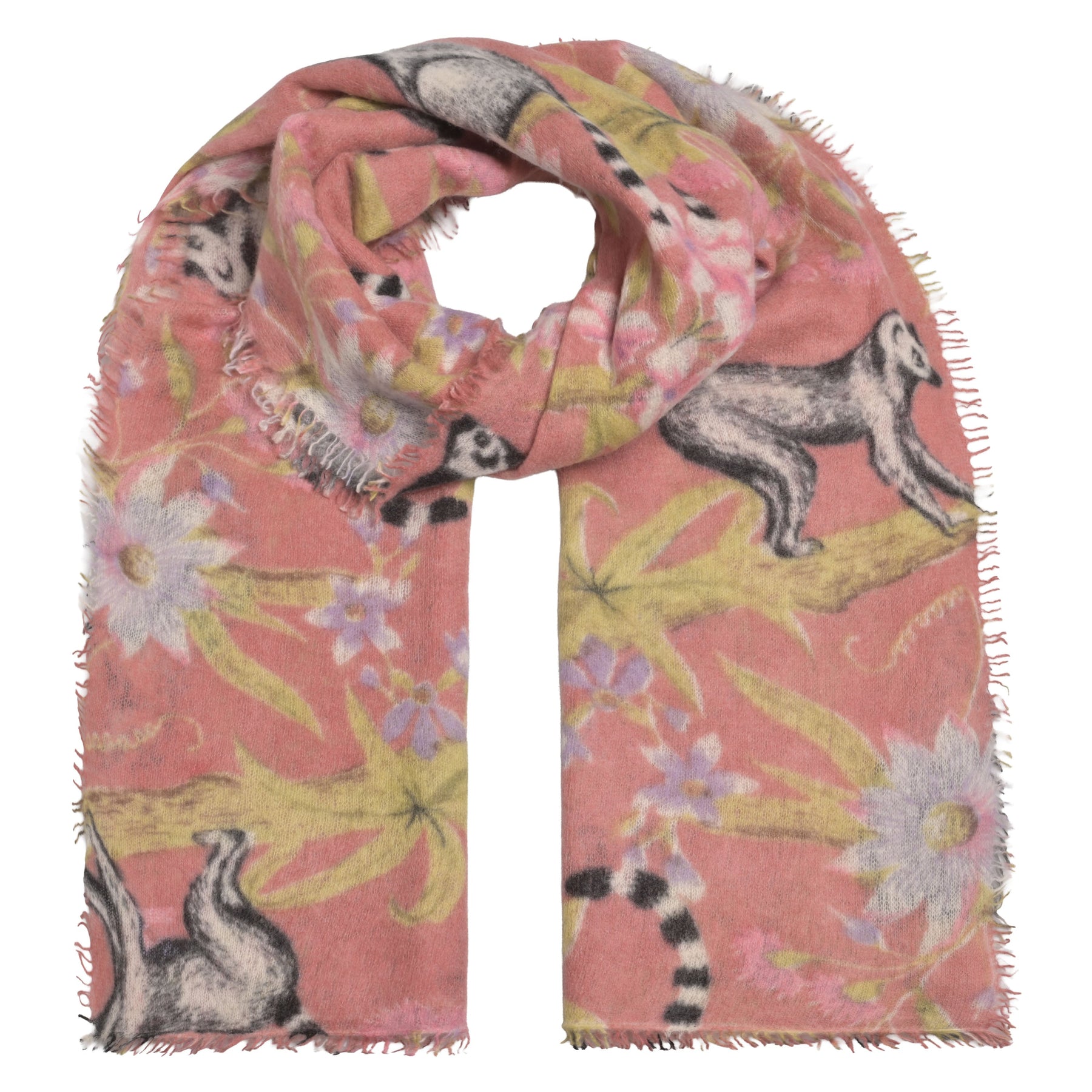Edler großer Kaschmir Schal 210 x 85 cm für Damen mit dezenten Fransen und mit aufgedruckten Lemuren aus 100% reinem Kaschmir, Farbe: Kiss Me, Produktbild