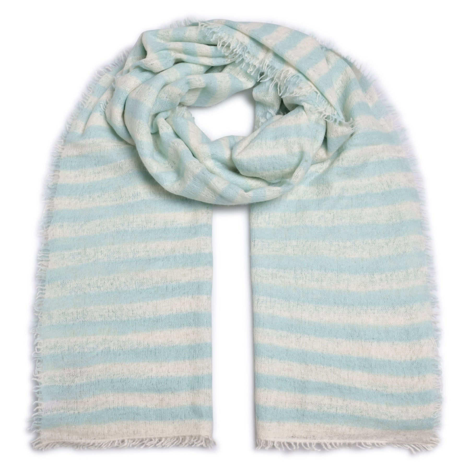 Dieser weiche und anschmiegsame Cashmere Schal hat Streifen in Mint und Weiß. Der gestreifte Schal mit kleinen Fransen ist aus 100% reinem Cashmere und kann zu jeder Jahreszeit getragen werden kann!