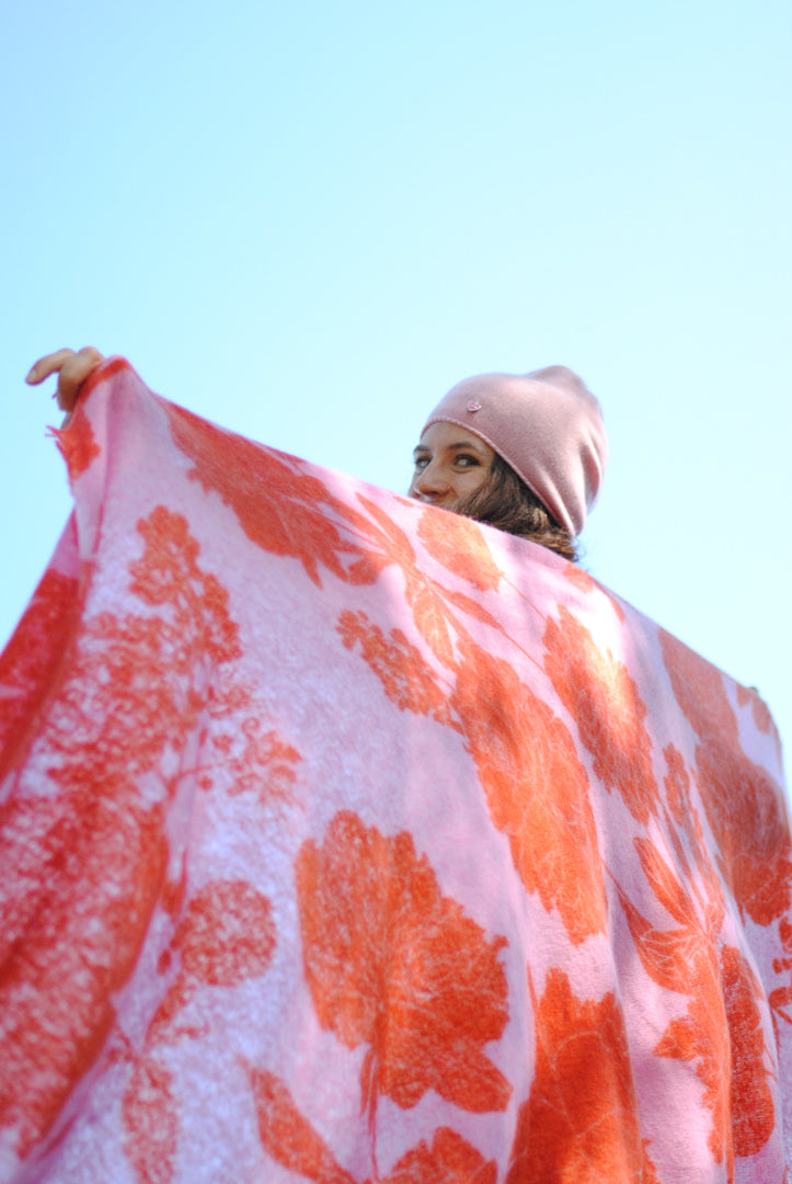Durch das sorgfältige Walken und Filzen während des Herstellungsprozesses wird der Schal besonders weich, fluffig und angenehm zu tragen.