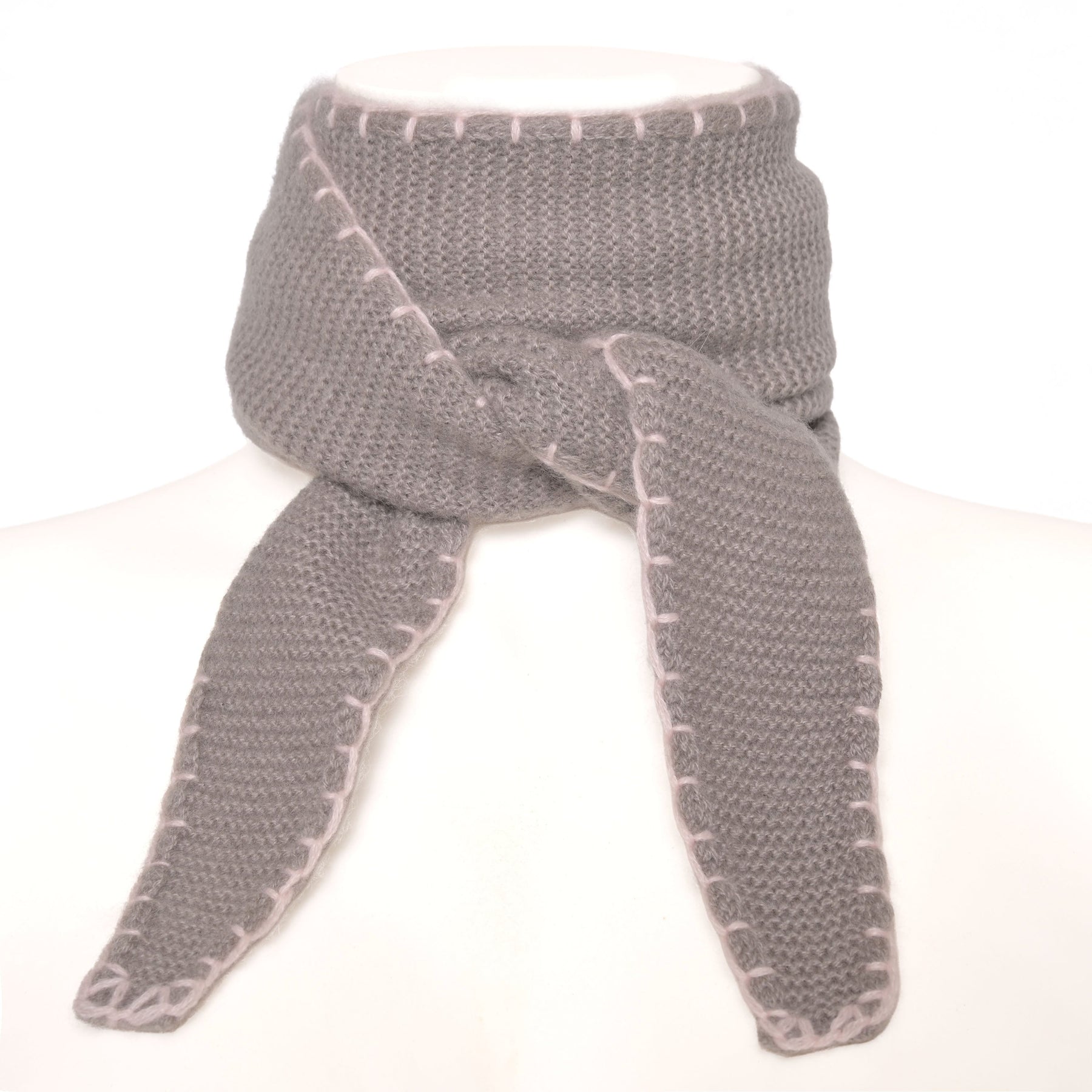 Ein zartes Accessoire für jede Saison: Dieser anschmiegsame, schmale Kaschmirschal aus 100 % reinem Kaschmir besticht durch sein feines Strickmuster und eine elegante Stitching-Kante in Hellrosa. Der edle Damenschal in Taupe fühlt sich wunderbar weich auf der Haut an und lässt sich das ganze Jahr über tragen.