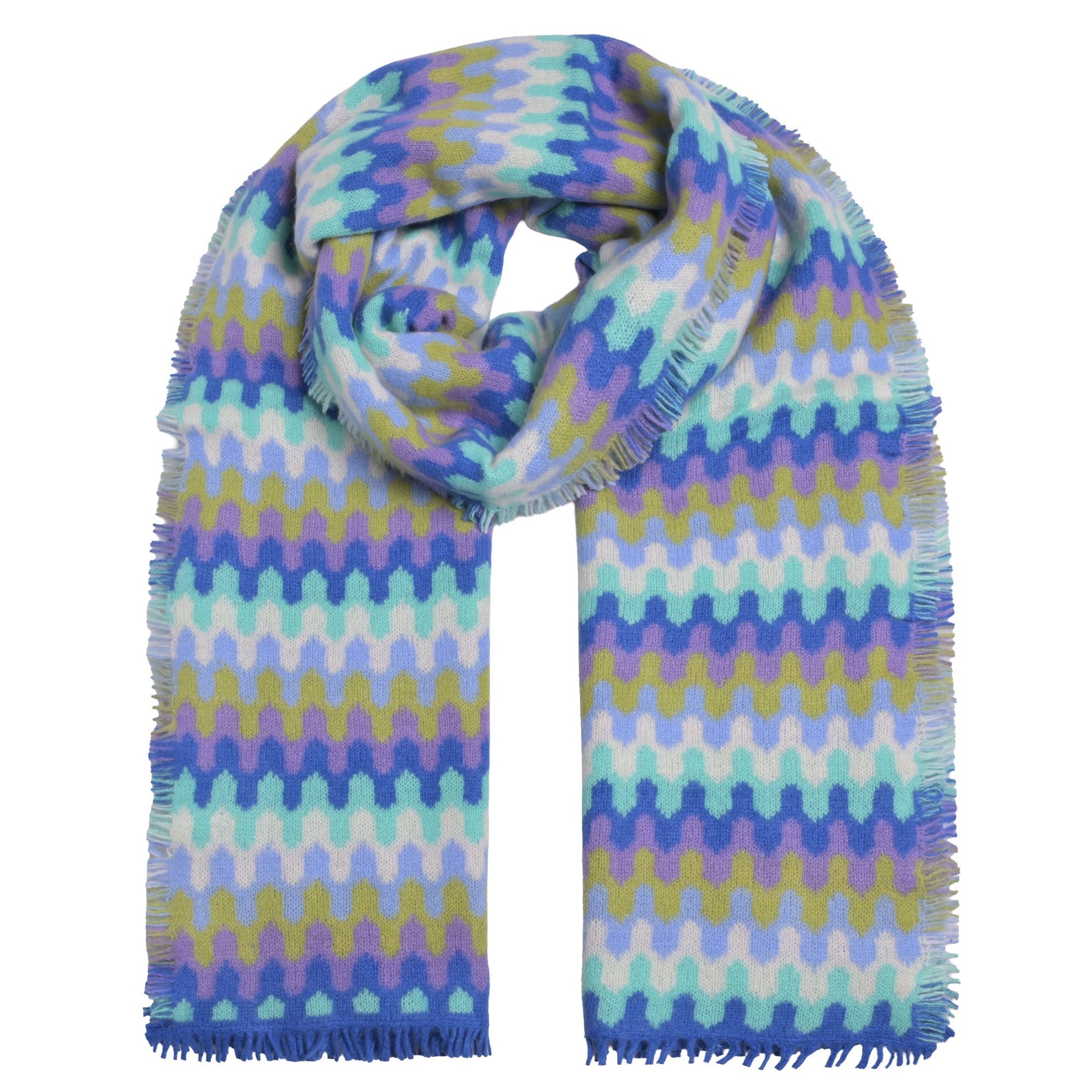 Cashmere Schal Liv-cs mit Zig-Zag-Muster in Königsblau