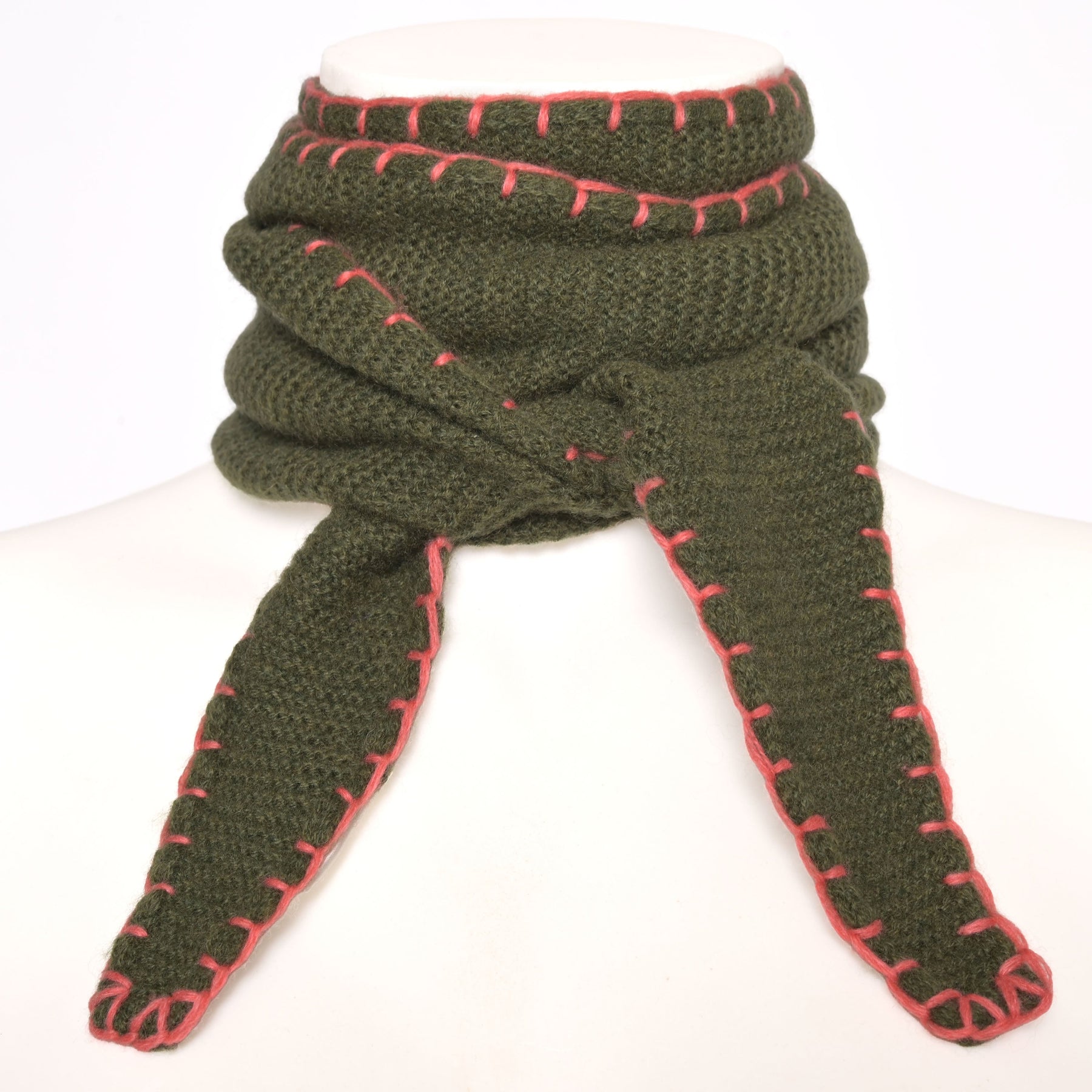 Cashmere Schal Ella-cs mit Stitching-Kante in Olivgrün