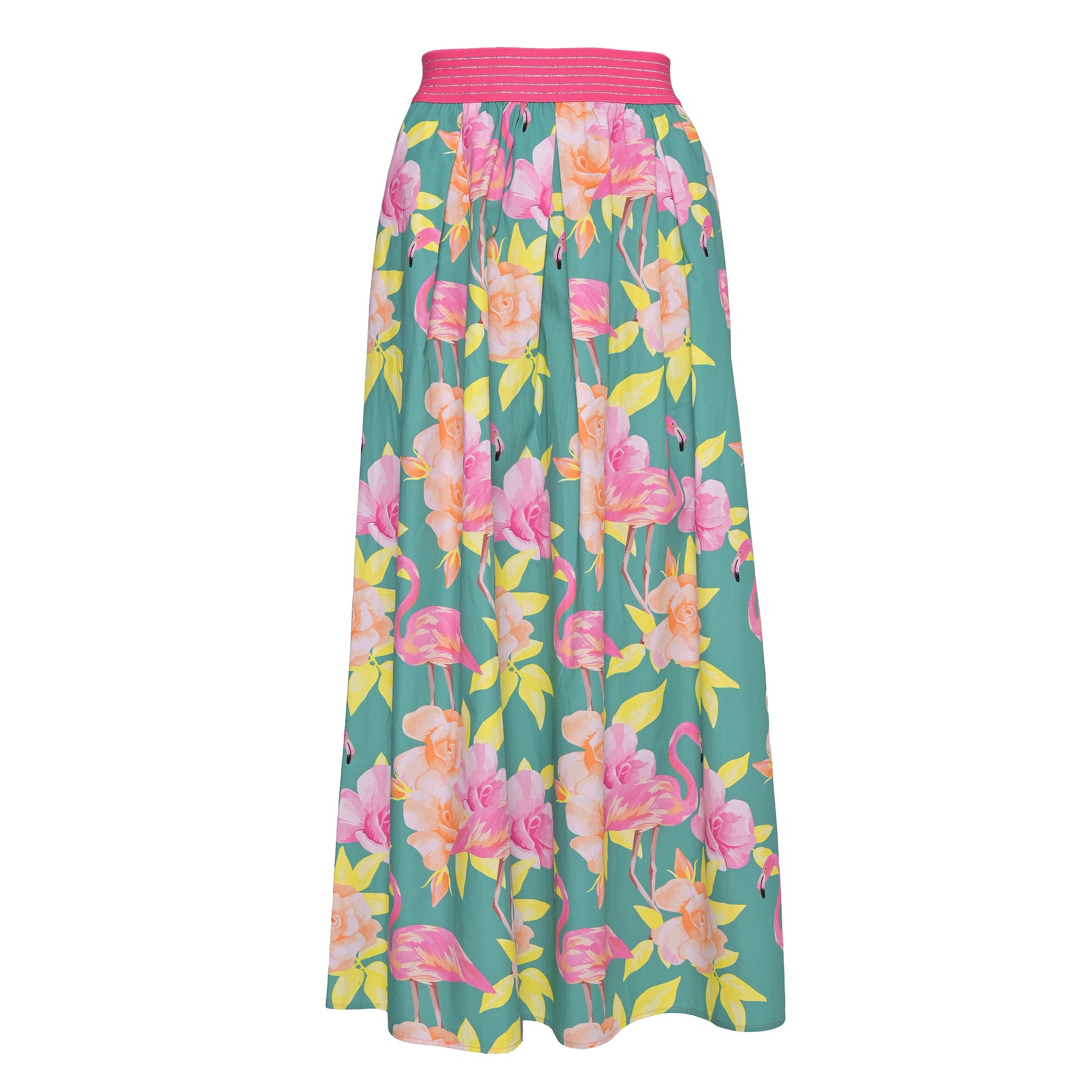 Langer Sommerrock aus Baumwolle mit Animal-Print Flamingos, elastischem Hüftbund, auch in großen Größen, Farbe : Peppermint