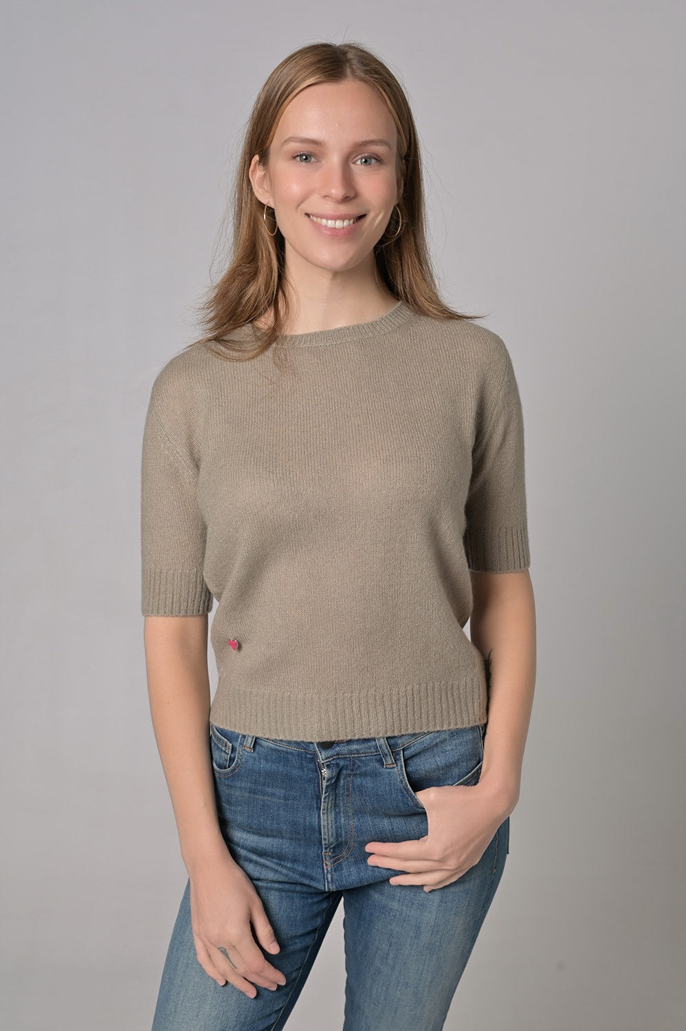 Der Kurzarm-Strickpullover Nele-cs mit Bündchen ist aus einer besonders luxuriösen Materialkombination von 75% Kaschmir und 25% Seide. Das verspricht ein sehr angenehmes Tragegefühl auf der Haut. Der Damenpullover fällt normal aus.