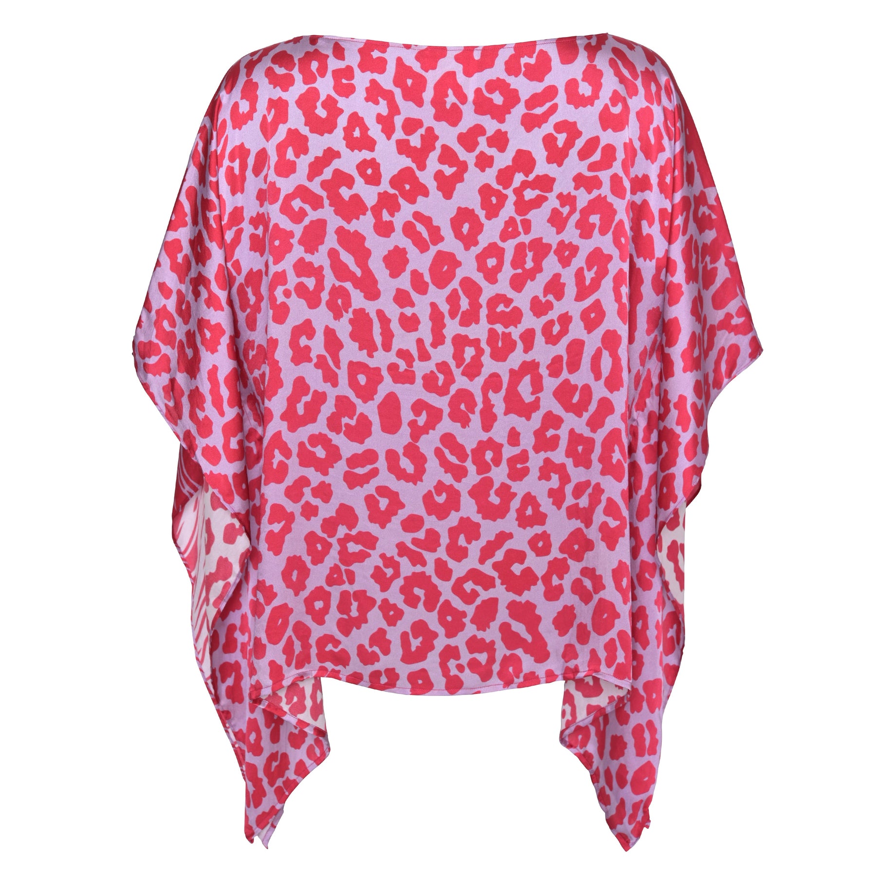 Dieser Kaftan in kurzer Länge ist aus reiner Seide und hat einen Leoparden-Print. Die Tunika ist wendebar und auf einer Seite mit einem Leopardenfell-Muster und auf der anderen Seite mit einem LeoHead-Motiv bedruckt. Die Seidentunika mit Rundhalsausschnitt verspricht ein angenehmes Tragegefühl und lässt sich vielseitig stylen: zu Jeans im Alltag, über den Bikini am Strand und glamourös zum Dinner.