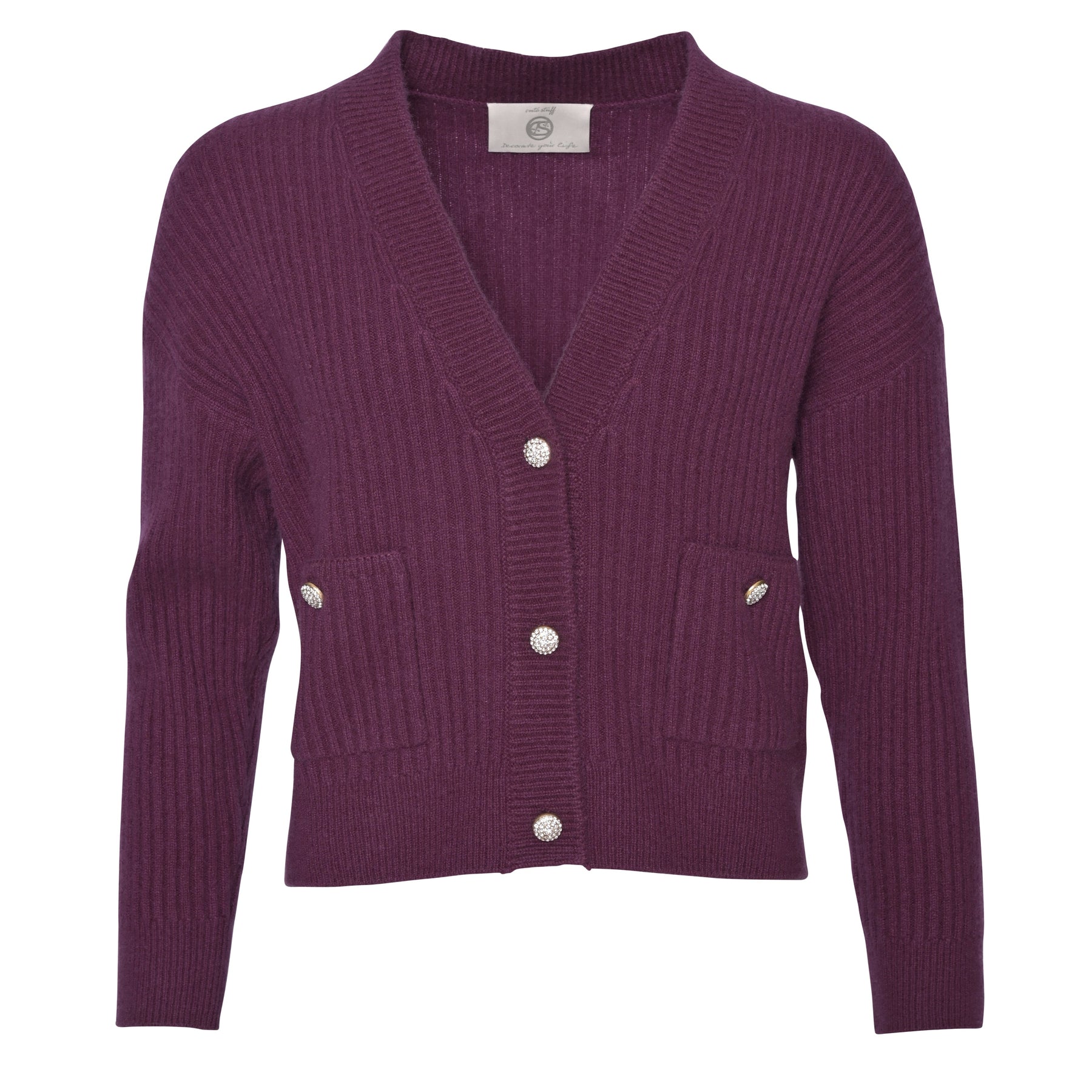 Die hübschen Knöpfe mit Strasssteinen und das kuschelig-weiche Kaschmir - unser kurzer Cardigan Vivi ist eine ganz besondere Strickjacke.
