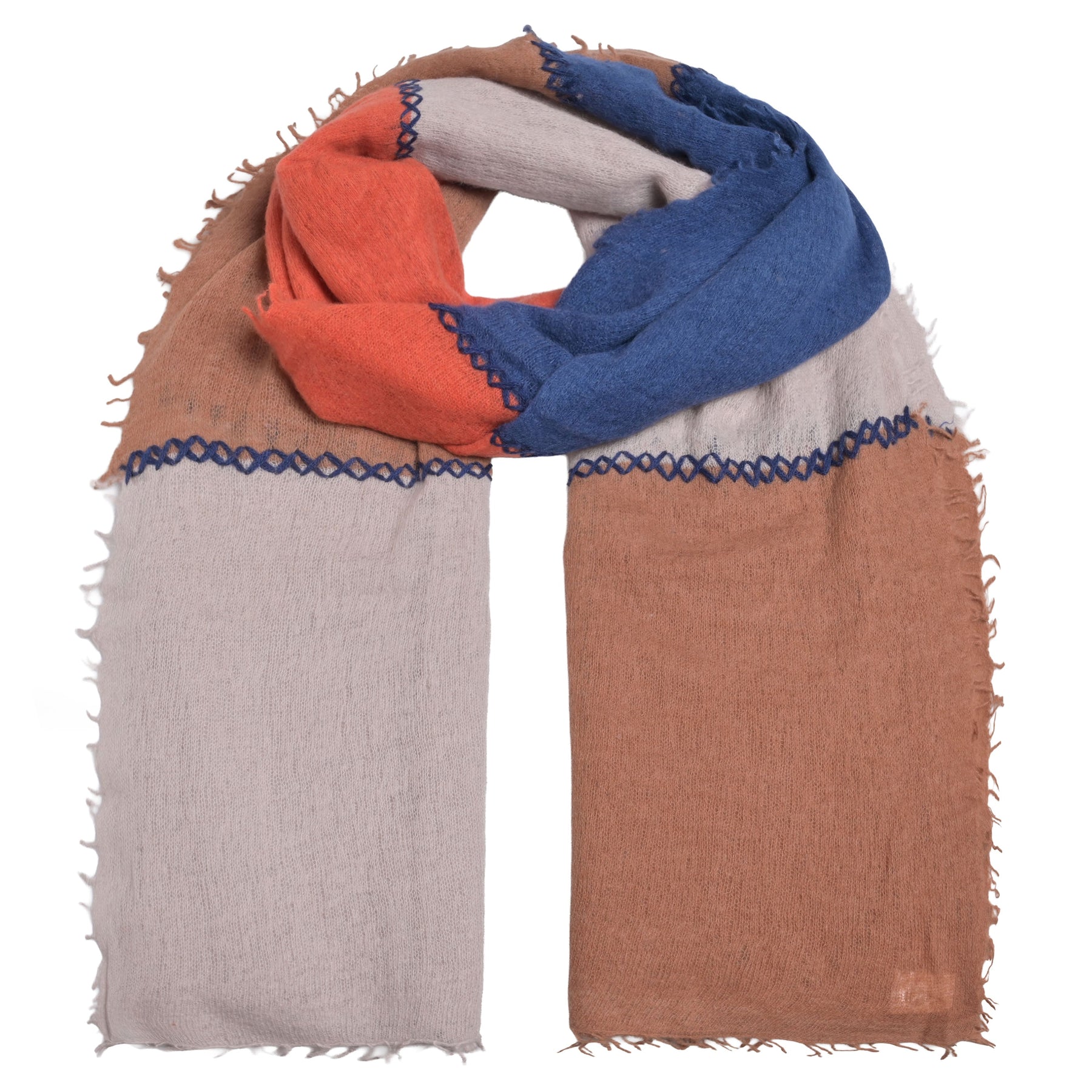 Dieser anschmiegsame Light Cashmere Schal hat bunte Blockstreifen und eine Stickerei im Kreuz-Stich zwischen den Streifen. Der luxuriöse Damenschal mit besonderer Veredelung ist aus 100% reinem Cashmere und kann zu jeder Jahreszeit getragen werden!