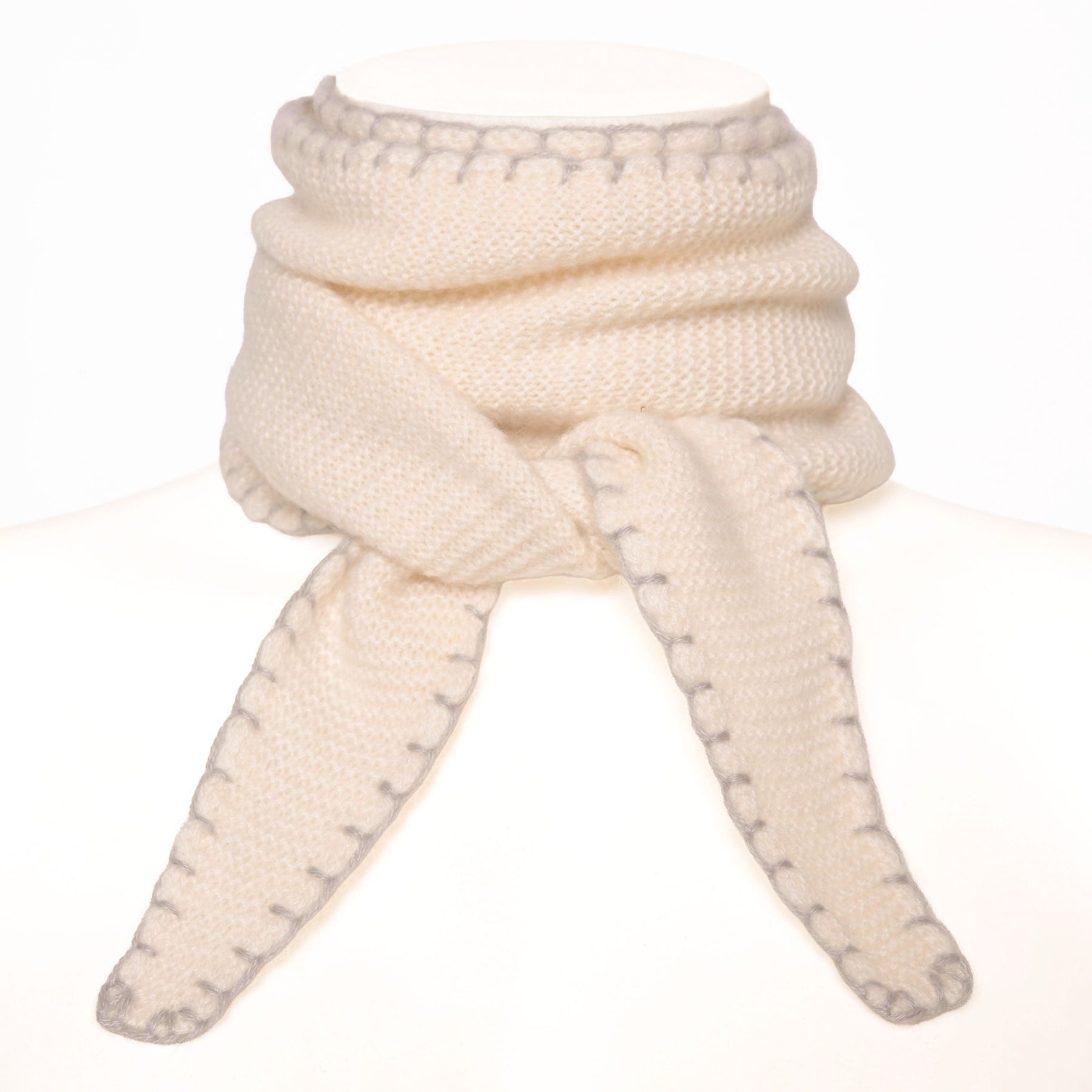 Cashmere Schal Ella-cs mit Stitching-Kante in Vanille