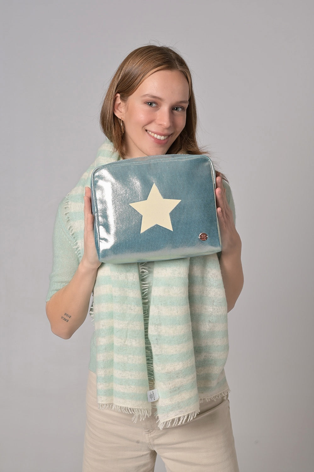 Unsere Cosmetic Bags sind fröhliche Accessoires mit glamourösem Design, Stern-Anhängern und verspielten Pompoms. Sie können auch als Clutch getragen werden und bieten genügend Platz für Smartphone, Portemonnaie, Schlüssel und Lippenstift.