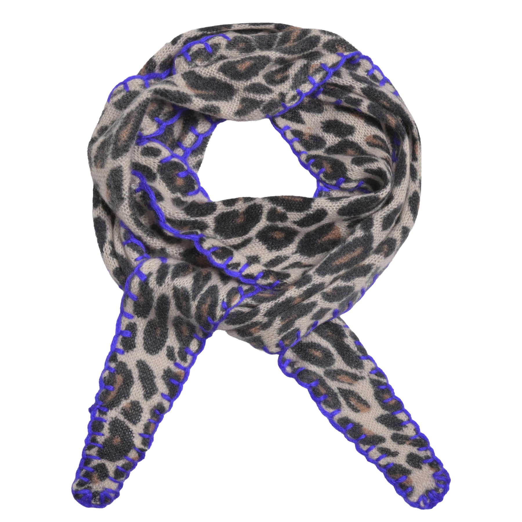 Cashmere Schal Ella-cs Leoprint mit Stitching-Kante in Brown
