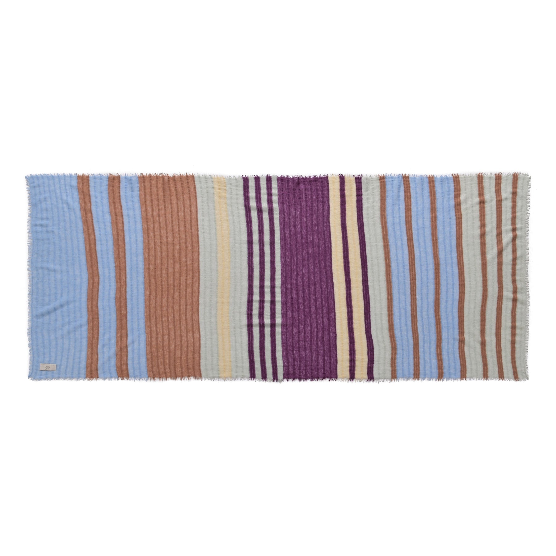 Dieser kuschelweiche Cashmere Schal ist ein schöner Blickfang! Der gestrickte Schal ist aus reinem Kaschmir, hat bunte Streifen in verschiedenen Garnstärken und kann zu jeder Jahreszeit getragen werden!